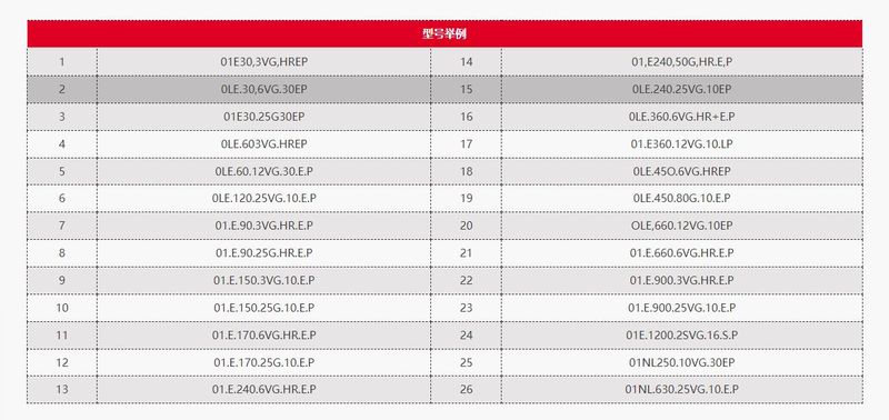 型號舉例